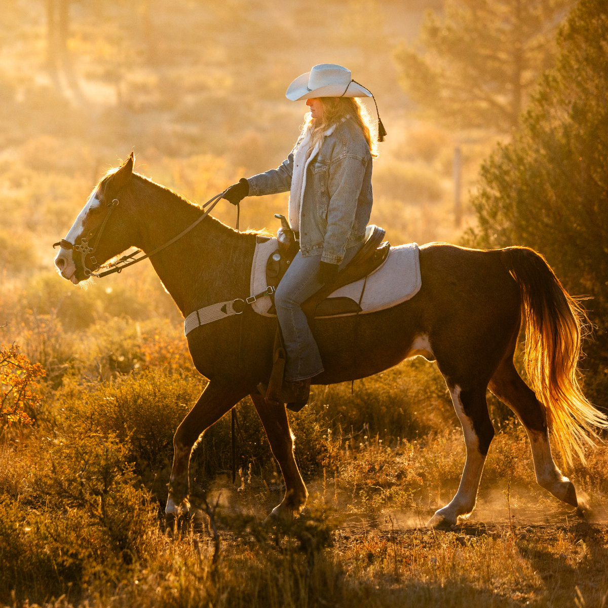 - Either riding/cowboy boots, light hiking shoes or tennis shoes (No deep-tread hiking boots or loose fitting tennis shoes)